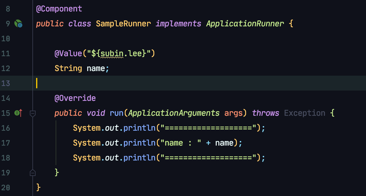 - application.properties에 입력한 값을 @Value로 사용 가능하다.