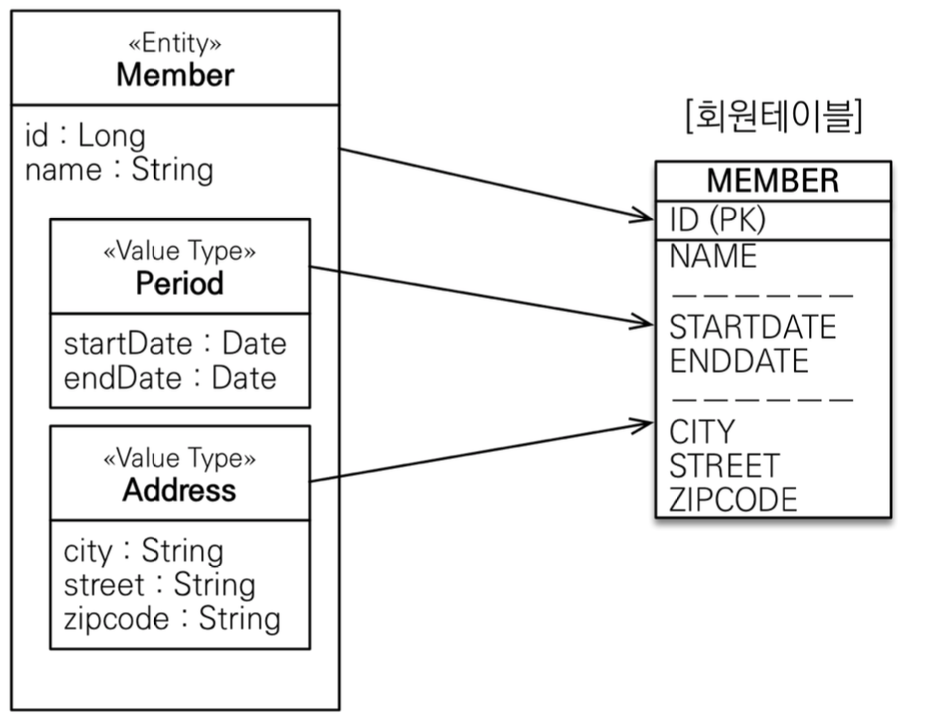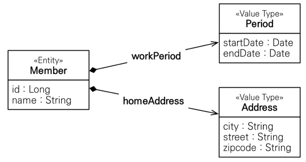 - JPA는 임베디드 타입 (embedded type)이라고 한다.